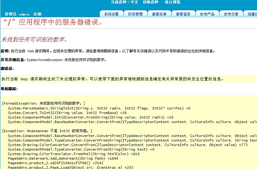 在后台发布产品的时候总是出现如附件的报错,请P友们看看是怎么回事?如何解决是好