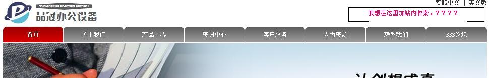 请教如何在 繁體中文 | 英文版 下的空白处加 站内收索?