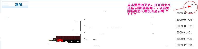 如题 在首页新闻那里显示的新闻是 6条 点那个更多 打开后怎么还显示的是6条 以前的新闻怎么不显示