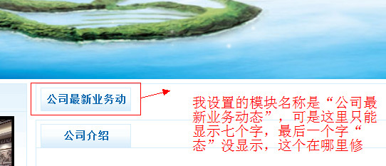 比如我将一个页面里面的某个模块名称设置为“公司最新业务动态”,可是最终就显示了“公司最新业务动”,最后一个字没显示,这个在模板的CSS里面哪里修改啊?