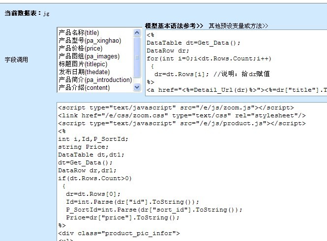 是所有这个数据表的模型还是只是我说的这个?我刚将上面产品内容模型里的productet用替换的方式全改了JG 就出现如图,介绍内容在右边好远
