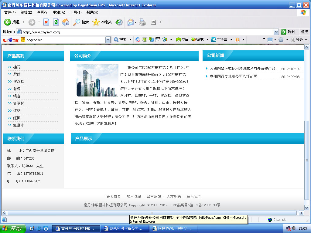 各们童鞋,我开始学用pageadmin的一个环保设备的模板制作网站,其他东西都还好,就是首页的产品展示没有显示出来,左栏的产品系列中的链接也没有用。各位帮忙,看是什么问题。现附图。谢谢。