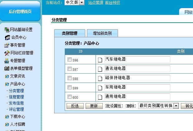 我在用V3系统中,后台有设置产品类别,但在前台无反应,请见上图