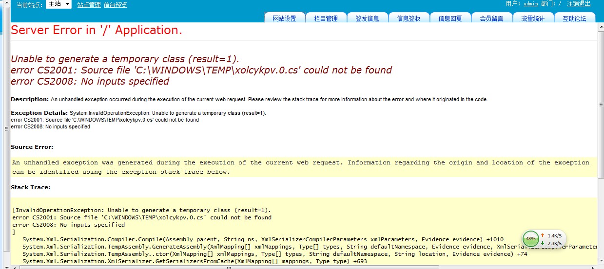 后台设置其他都可以的,一进【网站设置】那栏就报错,