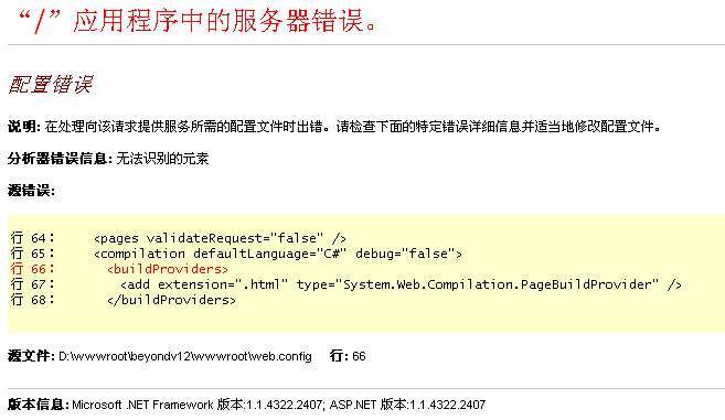 需要的NET版本是2.0或2.0以上,你的是1.1的,让主机商帮你更改一下NET版本