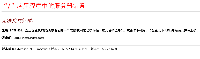 你是不是之前用install/index.aspx安装过一次啊。。如果是以前安装过一次的话。里面有个加锁文件要先删除再运行install/index.aspx这个文件。