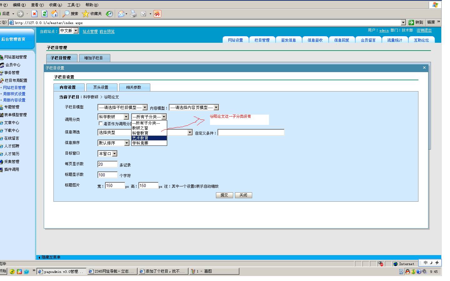 新加了一个子栏目 在文章调用时 找不到这个新加进去的栏目
