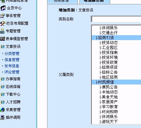 导航栏目已更改或增删,发布信息选择栏目时还是原来的栏目