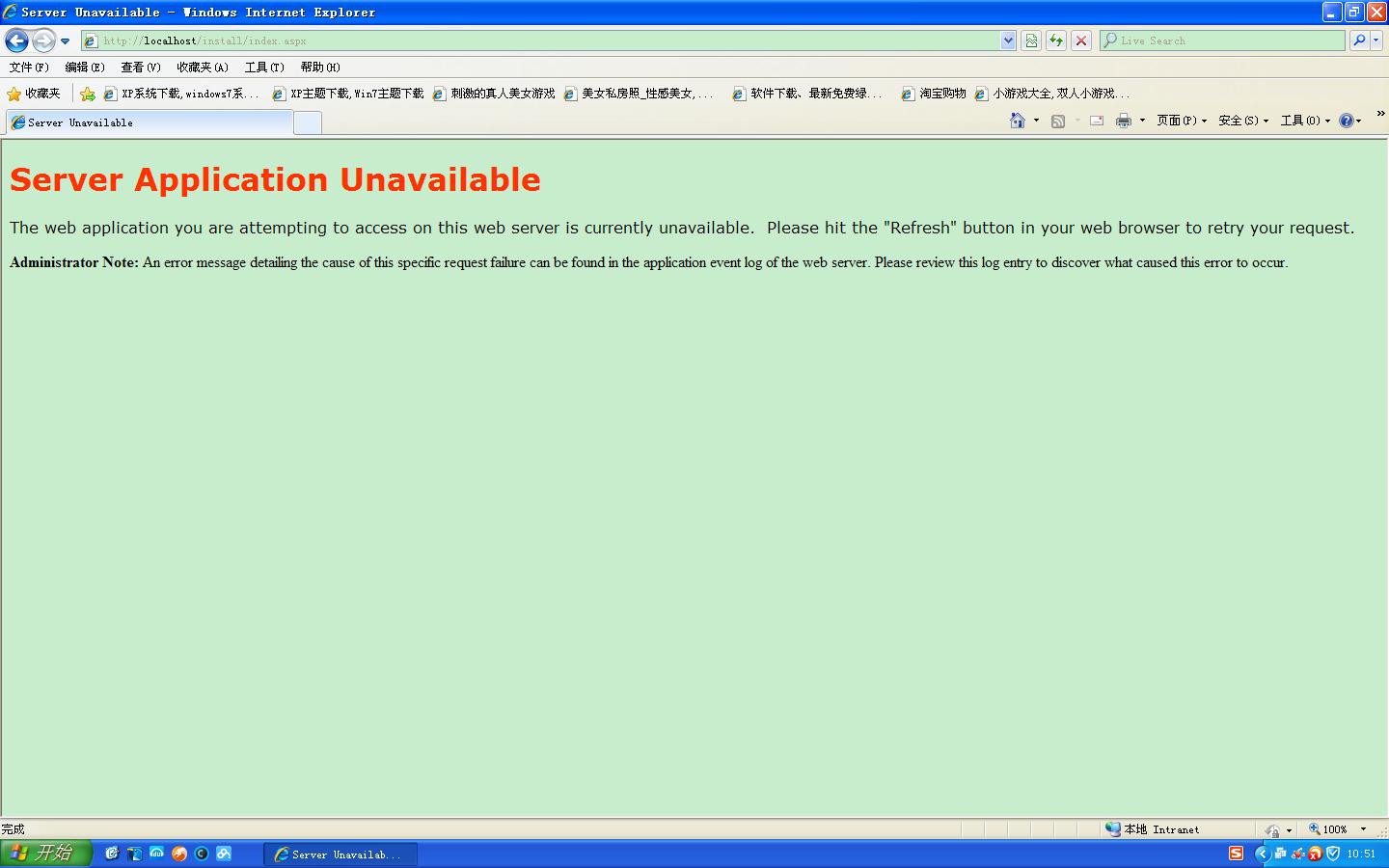 localhost可以出现XP的欢迎页面,安装时出错,怎么解决啊,谢谢!