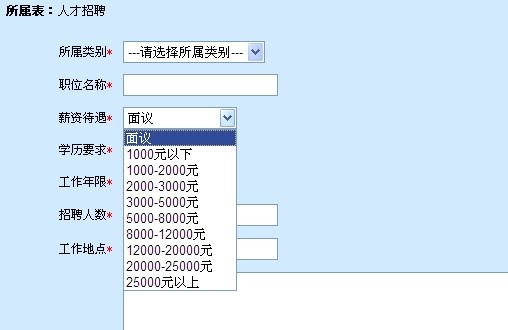人才招聘信息发布的“薪资待遇”选项工资区间怎么修改???还请版主大大指导下。就是修改1000-2000改成1200-1500等等。