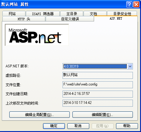 1、检查asp.net属性哪里选择了2.0没有(或以上版本)