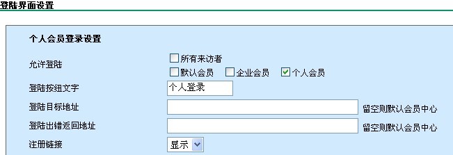V2.1 20090814版本中,后台JS调用区中“会员登陆调用”使用后,生成两种不同会员类型的JS代码,然后通过界面设置不同的登录权限,最终前台呈现出来两种样式,分别都有注册按钮,在不同的登陆框的注册区域注册后,会员后台查看时,没有分类,都在默认的会员里,没有在对应的分类会员中,这如何解决?