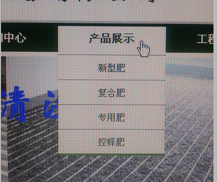 如何在后台修改网站首页的分类名称下隐藏的小标题,就是网站首业的分类,鼠标放在大分类就显示隐藏小的分类标题,我想在后台增加和修改隐藏的的小的分类标题,该如何做,那位大侠指条名路, 如图那样,鼠标的箭头放在产品展示标题上,就自动弹出下面的四个小标题(新型肥,复合肥,专用肥,控释肥),要是鼠标箭头离开产品展示,四个小标题就自动隐藏,我想在网站后台修改那四个小标题(新型肥,复合肥,专用肥,控释肥),该如何修改,请版主赐教