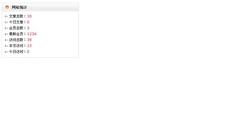 ○- 文章总数:<span class="hs"><%=Get_Data("co","select count(id) as co from article")%></span><br>