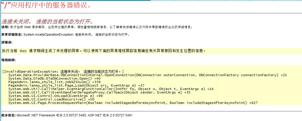 3、以上错误未修改过任何模板和文件,运行环境为windows server 2008 r2 +framework 2.0。