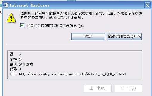 用IE打开会发现浏览器状态栏左先有一个错误提示,具体要仔细检查,也可能脚本保存在了数据库中