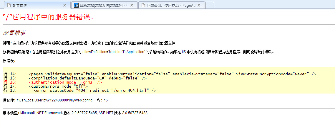 网站不能放在子目录下,必须放在iis应用程序站点根目录下才能识别