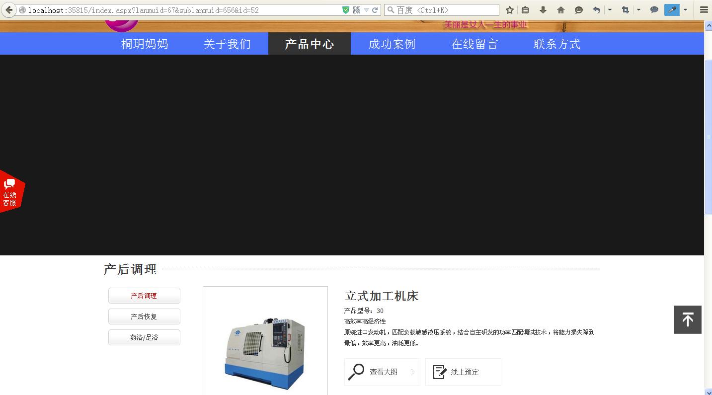 在进入首页后 点击 产品中心 栏目, 进入产品中心 到此时为止 所有的东西都是正常的