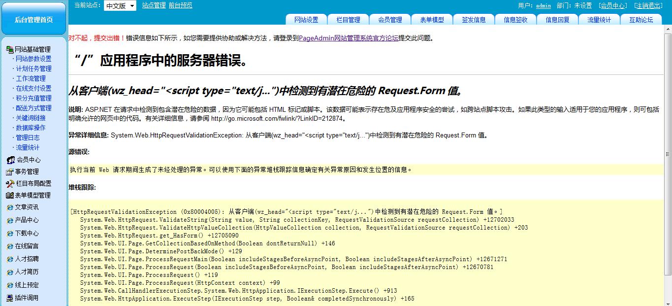 服务器搭建完成后,在后台[网站基础管理]-[网站参数设置]-[点击提交]后就报错了,请问是什么情况,感谢。