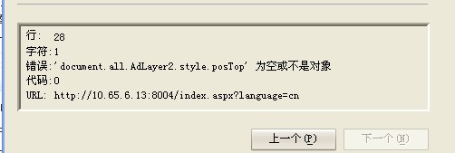 后台开启对联广告后,网页右下角出现黄色感叹号,提示页面有错,JS脚本有错?出错信息见附件图片!