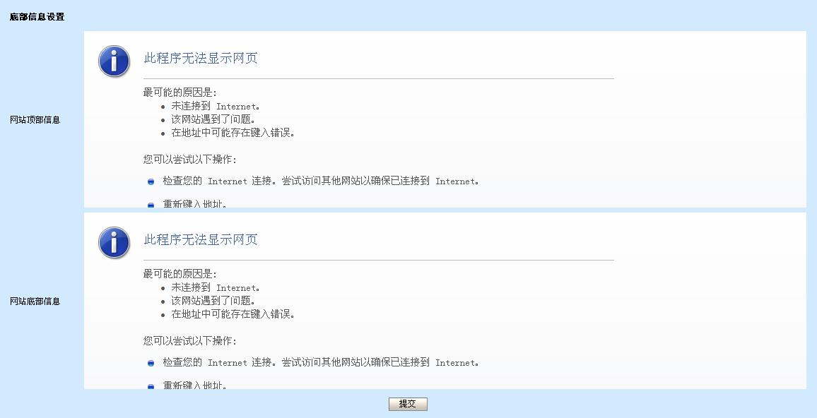 见附件图片,不知怎么搞的。在网站顶部和底部信息无法显示