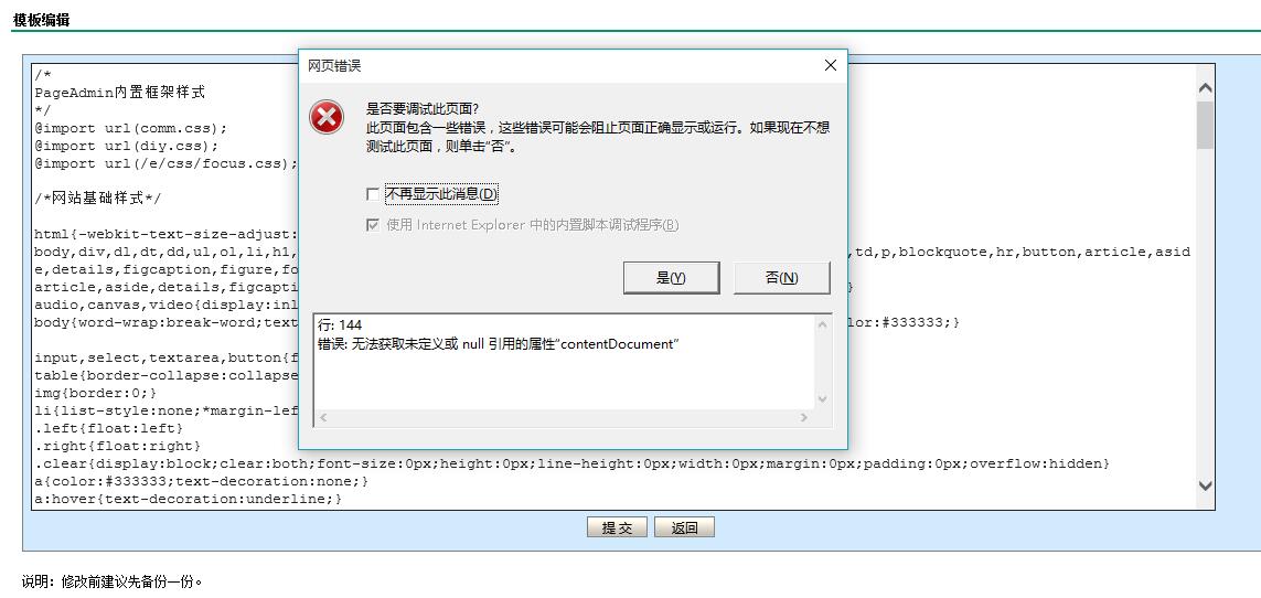 版主求救,出现错误行: 144错误: 无法获取未定义或 null 引用的属性“contentDocument”