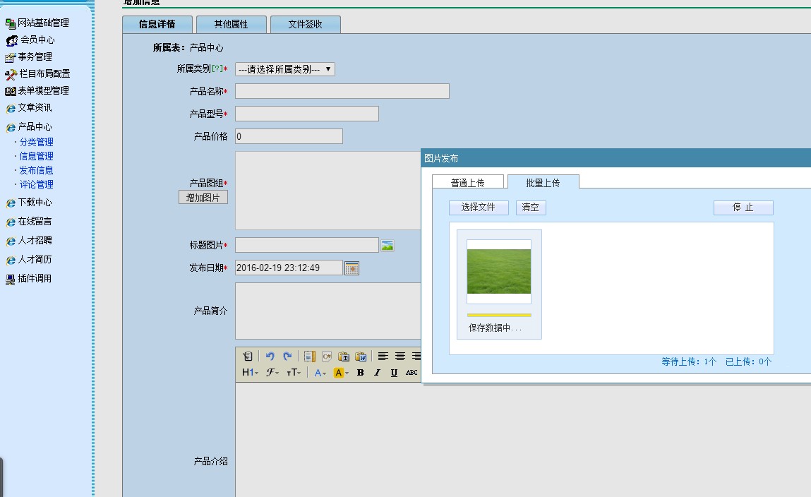 后台发布产品信息上传图片失败,批量上传和单个图片上传都失败,同时网站不能正常访问,十分钟后恢复正常!但是在文章发布页面上传图片正常!