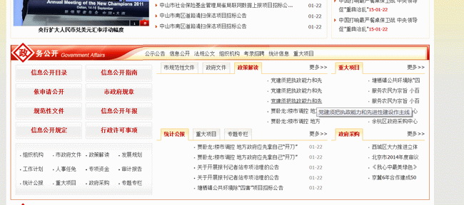 G9政府版政务公开中间的文章列表跑到右边,显示混乱!!请更正!!