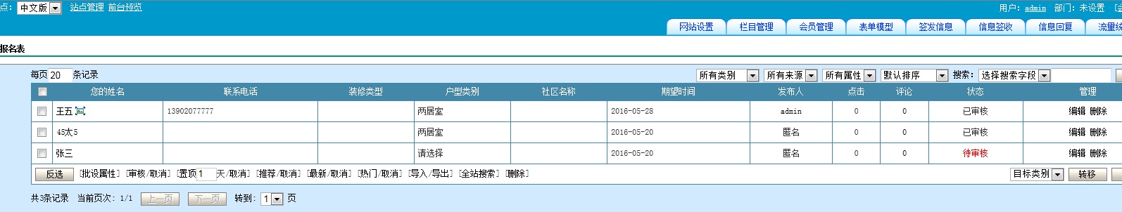做了个在线报名表 管理后台只能显示姓名和户型,联系电话、装修类型、社区不显示,如图,求教高手指导。