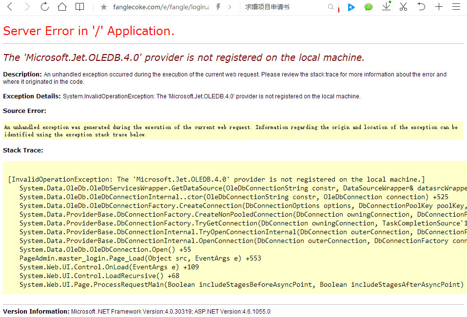 求大神帮助 网站本地做完后上传服务器,后台登陆后反馈Microsoft.Jet.OLEDB.4.0未注册