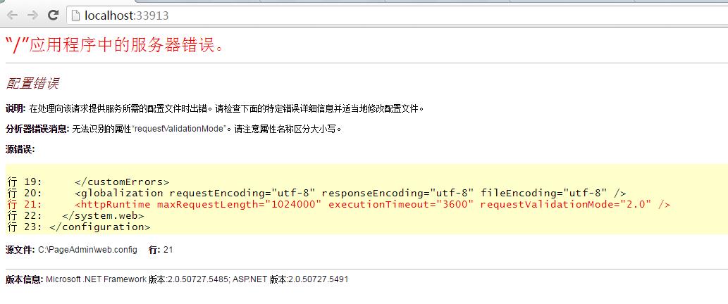 请教一个问题了,我在官网上下载了PageAdmin后,出现如下的提示。请问什么修改或是配置可以。