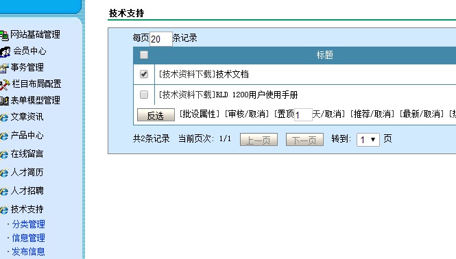 在后台保存技术支持文件上传后,前台查看无法看到已经上传文件安,在技术支持栏目下。