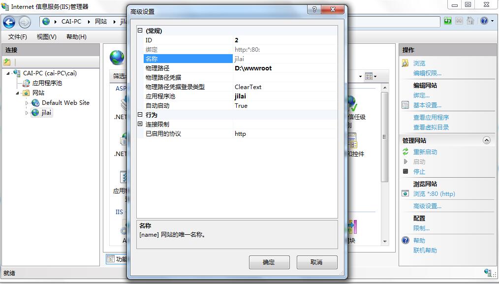 是不是要把原来的网站设置改掉还是怎么,现在这个网站下面有两个网站,一个是我新加的,一个是原来就有的(名字叫Default Web Site)