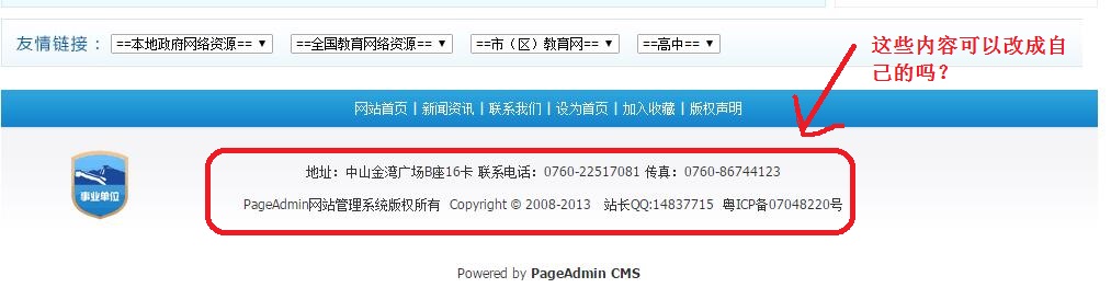 页面底下的这行版权信息Powered By PageAdmin CMS 要保留,其他地方的都可以修改吗?