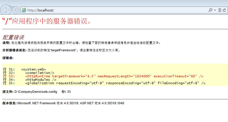 你的服务器的framework版本低,最少要4.5,我之前遇到过,下载了4.6安装搞定