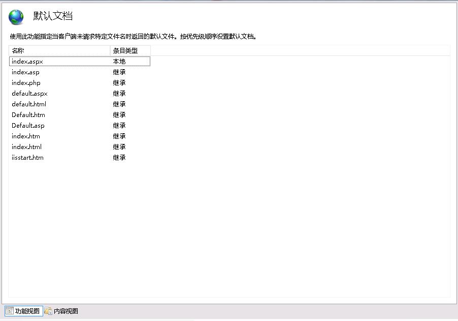 默认文档里面有index.aspx