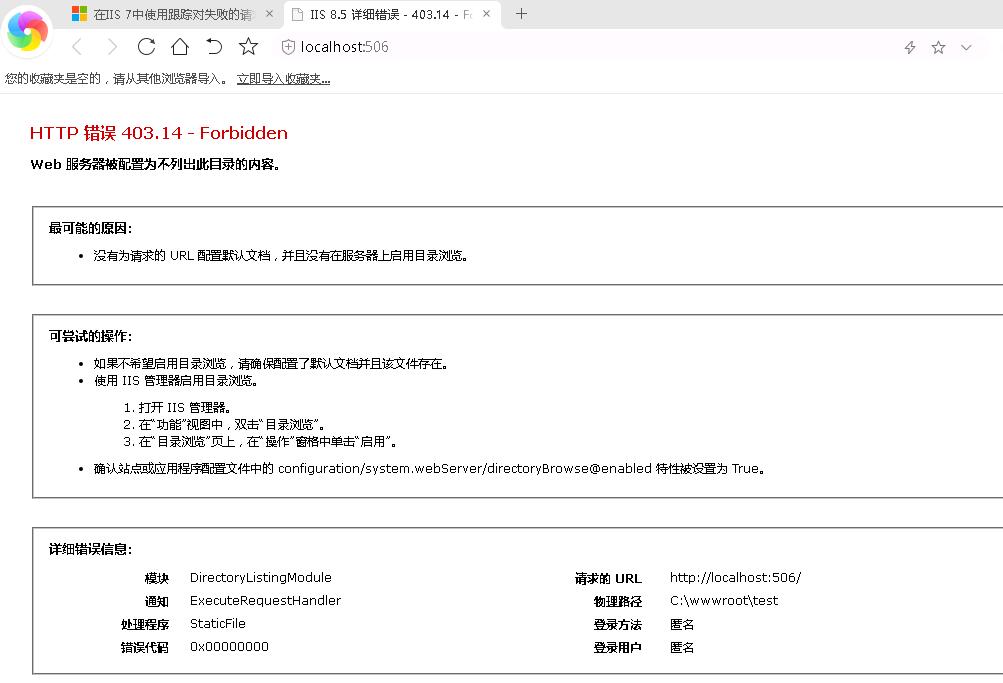 HTTP 错误 403.14 - Forbidden Web 服务器被配置为不列出此目录的内容。