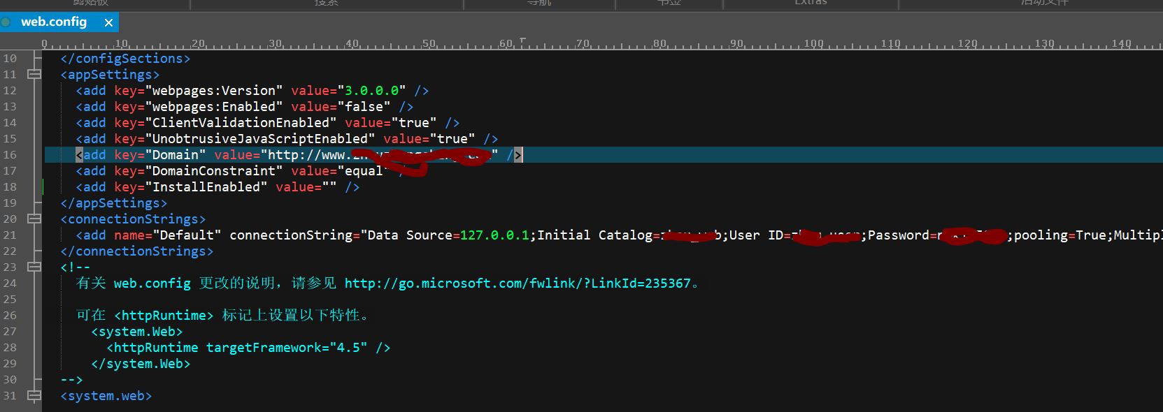回复 5楼xiyou的帖子感谢xiyou解答,域名已经ICP备案。以下为web.config的截图,麻烦帮忙看下是配置准确。