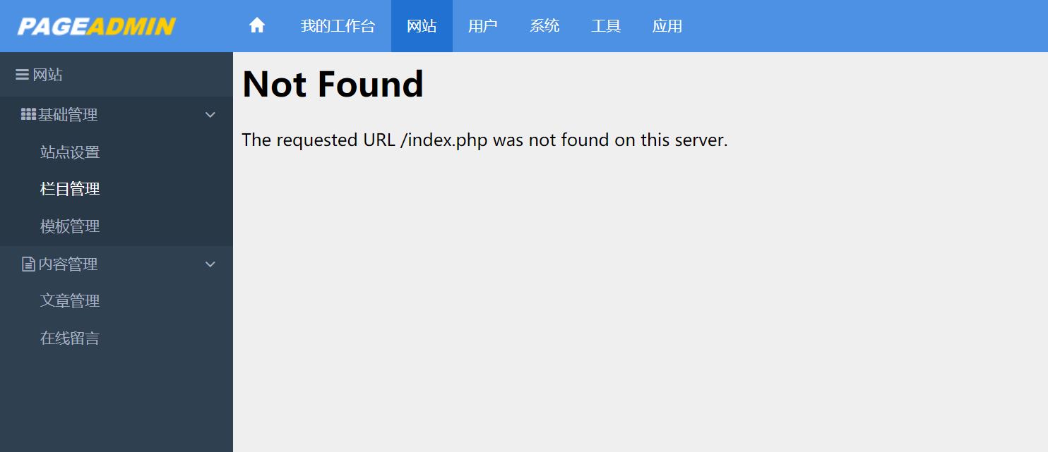 而且,登录pageadmin后台,有些界面是打不开的,提示“Not Found
