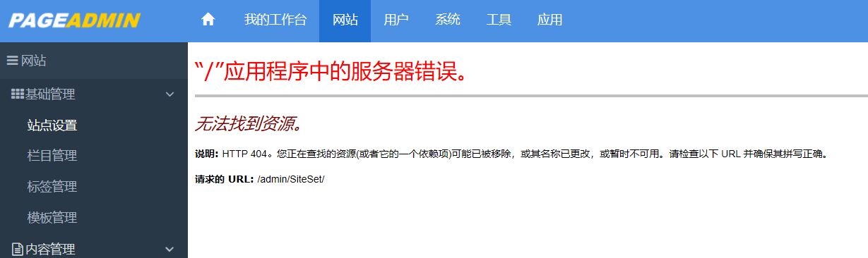 点击站点设置,服务器错误