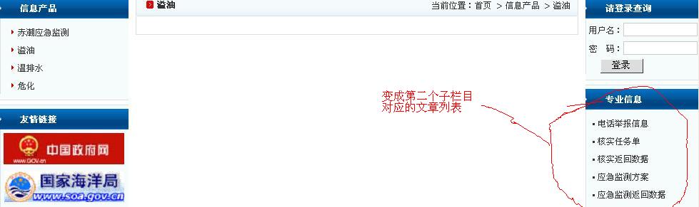 在大栏目中右边设置了一个导航栏,为文章列表。现在想实现的效果是切换到每一个子栏目时,对应的文章列表导航栏显示不同的文章类别。如何实现?
