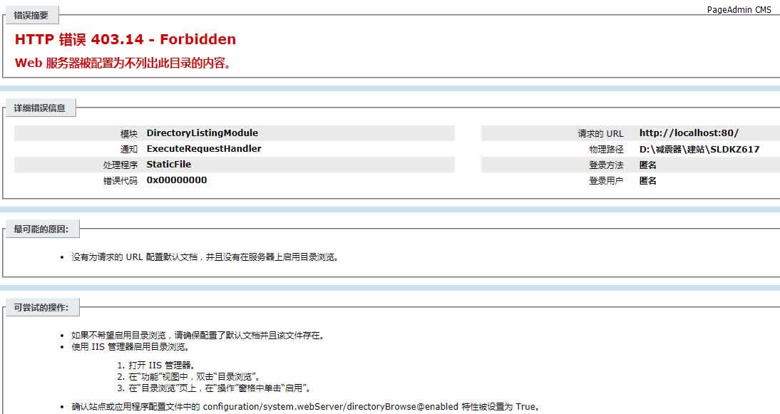 按照帮助配置好本地网站后,打不开,提示HTTP 错误 403.14 - Forbidden