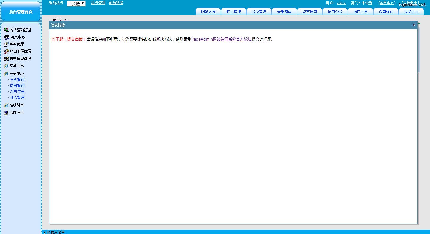 产品信息更新 提交后 报错
