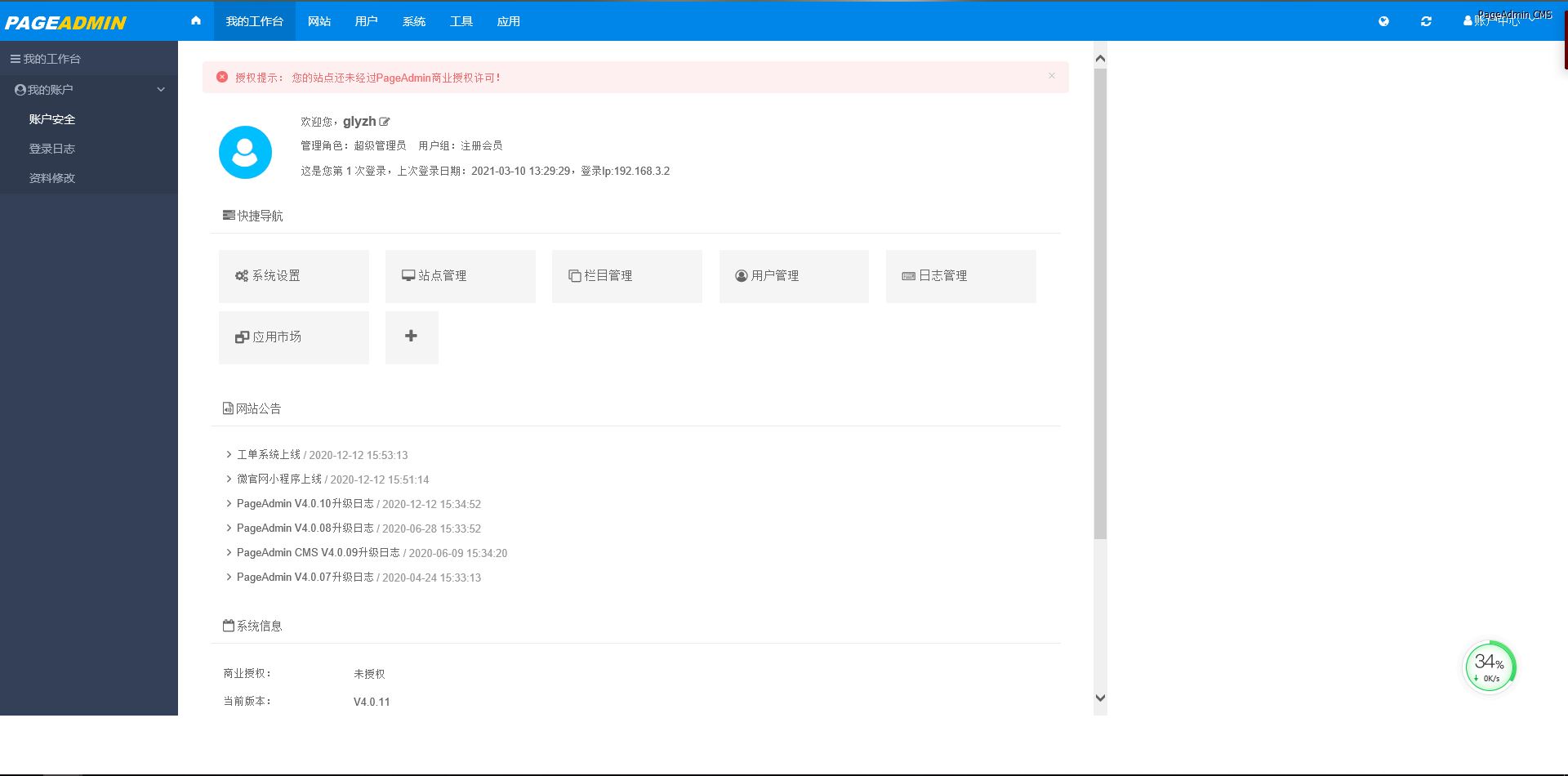 安装了PageAdmin后台可以进去,首页打不开是为什么?