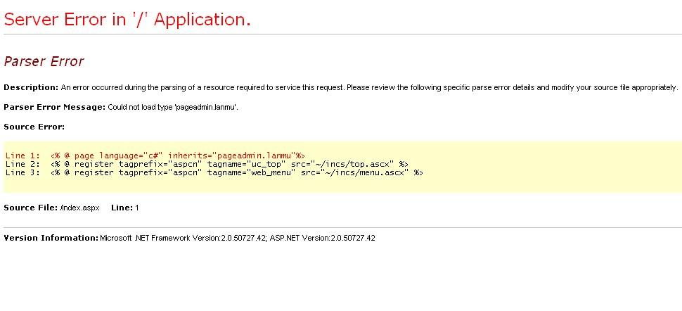 我自己的电脑是XP系统,调试完成Pageadmin系统没有任何问题,拷贝到WIN2003的服务器上,运行2天左右没有问题,但是突然就出现下图提示: