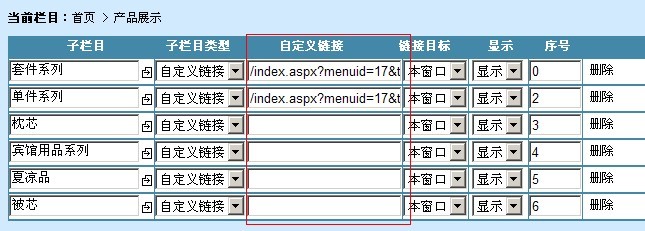 先把产品栏建好,就是子栏目中的产品列表设置