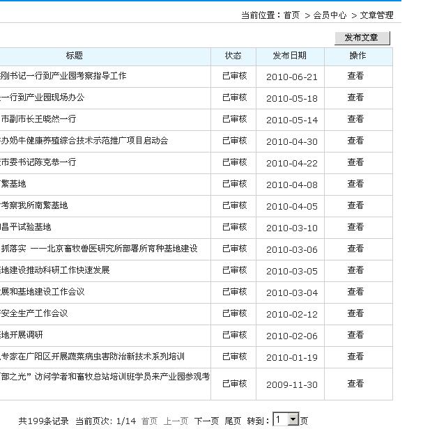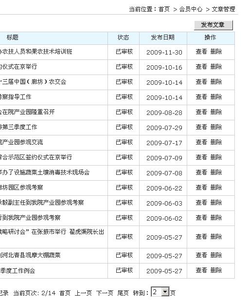 由于该会员发布的文章比较多,分多页显示,但点击“下一页”按钮或直接转到其他页面之后,“操作”栏出现“删除”选项,但该会员是没有删除文章的权限的,如下图所示。