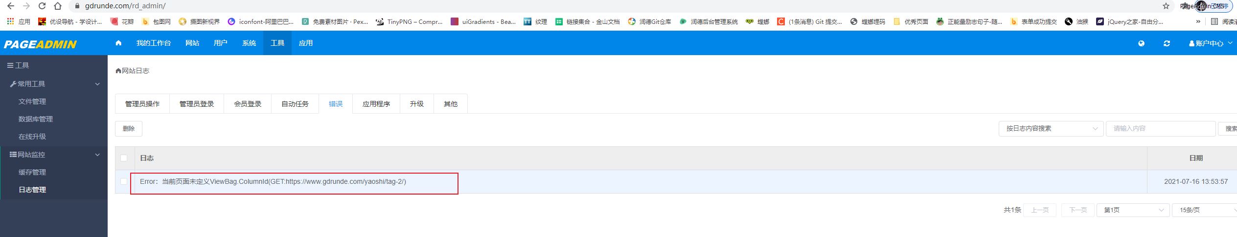 具体错误到后台日志 错误日志中看具体什么原因