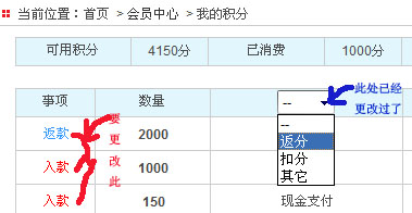 但“事项”里面的“入款”“扣款”“返款”这三项我想改成“返分”“扣分”“其它”.不知道在哪里改,请哪路高手帮忙,小弟感激不尽!