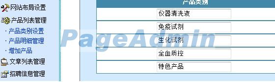 这些就是子栏目下的内容,可以更改,也可以全部删除,但是新增加的子栏目类型要是产品列表类型才可以调用产品类别,其他子栏目类型类型你自己可以体验一下。